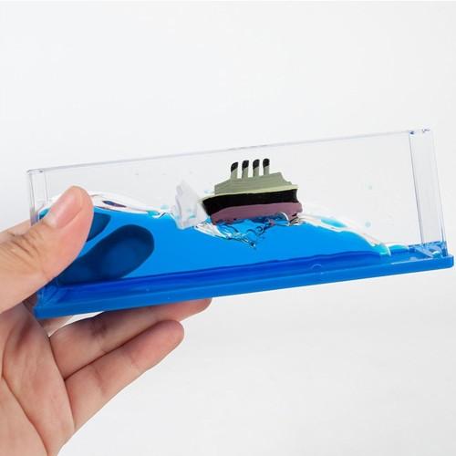 Bring the calming, majestic motion of the ocean to your desk or shelf with this captivating Unsinkable Ship Liquid Motion Ornament. Encased in a durable, clear acrylic block, this unique piece features a miniature, classic cruise ship and an iceberg floating on a sea of swirling blue liquid. It's a mesmerizing and symbolic display that's sure to be a conversation starter.