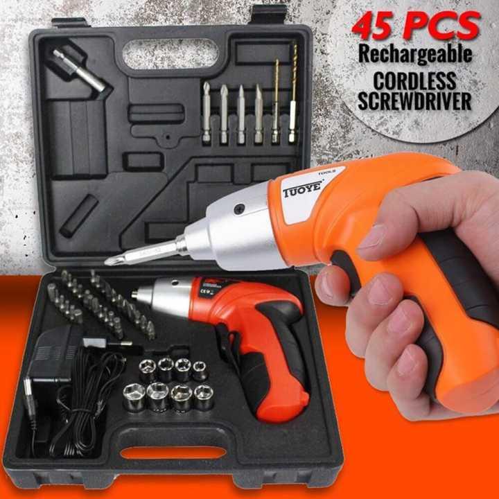 Unique electric screwdriver, mini size but strong power, easy to operate and use, excellent household mending tool.Forward/reverse switch for unscrewing/screwing.LED hard light illumination function, help to work in the darkness.Fully adopt human engineering design, deliver more comfortable grip hand feeling, light weight, convenient for carrying with.High magnetic drill bit holder, easy to replace the drill bits or screwdriver bit, guarantee high efficient working.Large capacity battery provides long time usage.